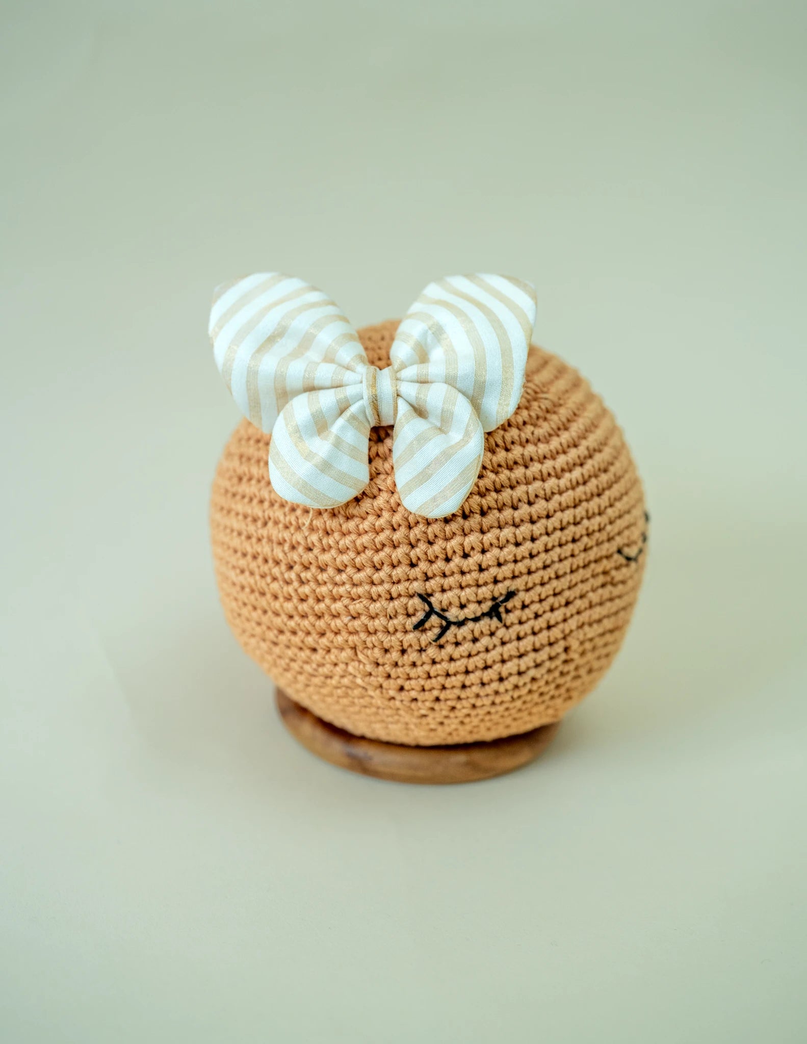 An exquisite handmade silk hair bow for infants, designed in a delicate off-white shade to complement any outfit.