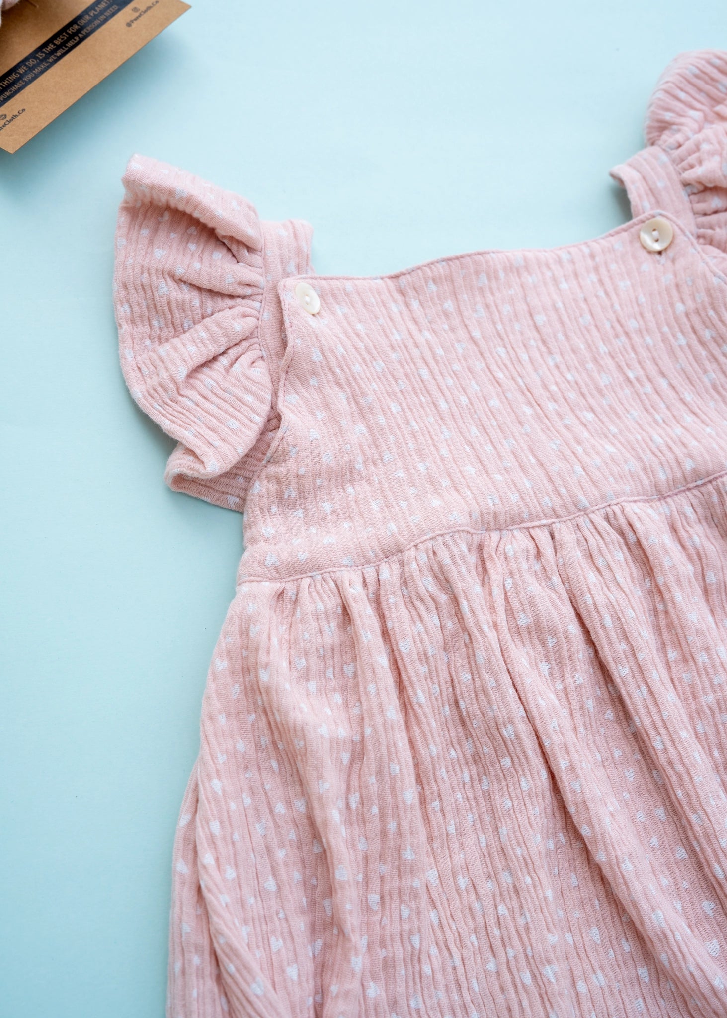 Crafted from 100% pure cotton, this adorable romper is designed to keep your little one cozy and happy all day. The double-layered muslin fabric offers soft, gentle warmth—perfect for a baby’s delicate skin. Paired with a matching accessory, it makes a picture-perfect outfit for special moments and photoshoots. Thoughtfully made for comfort, cuteness, and gifting, it’s an ideal choice for newborn celebrations and memorable keepsakes.